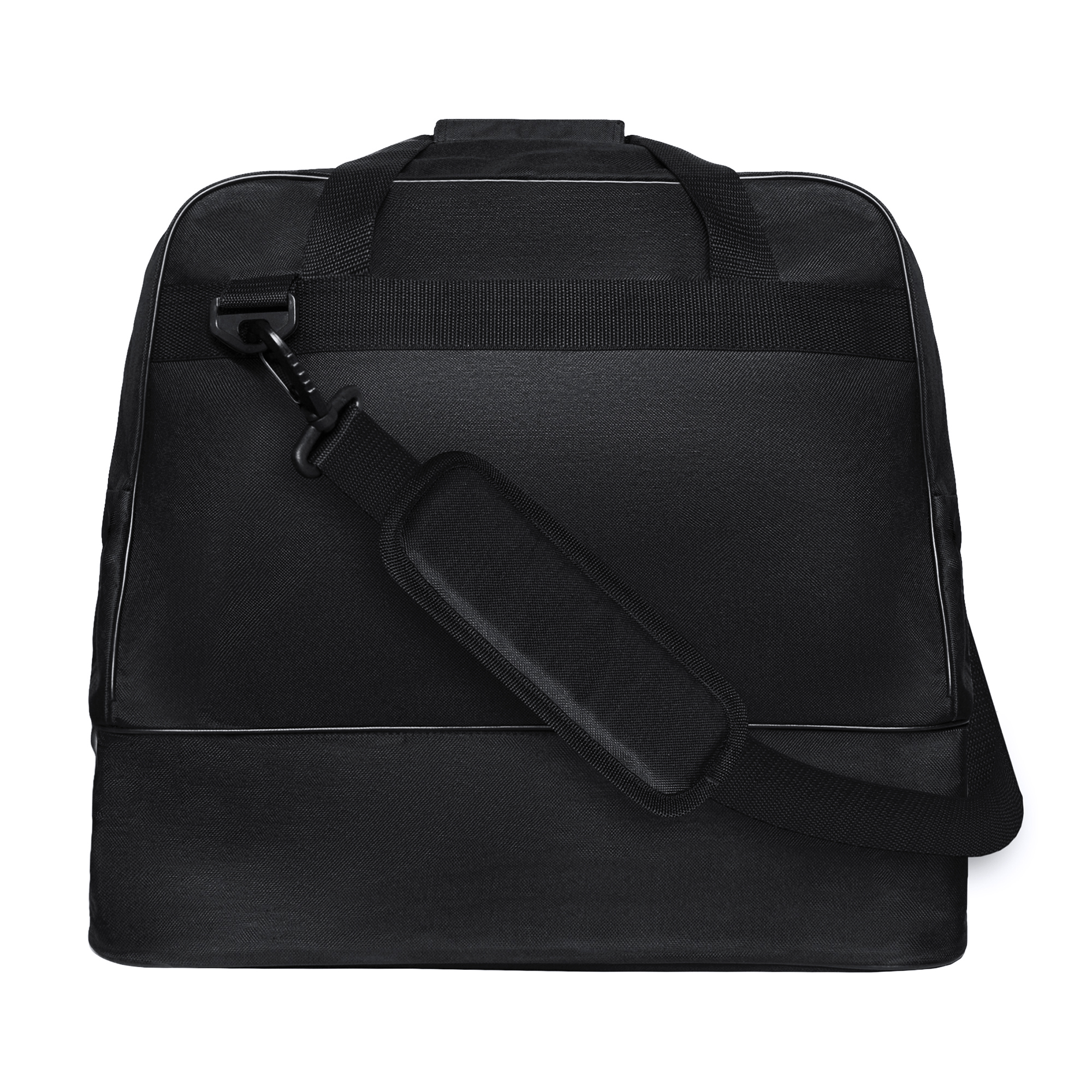 Bolsa deportiva con doble asa y asa larga ajustable para colgar. Bolsillo principal con doble tirador. Bolsillo zapatillero con compartimento extraíble. Anti-humedad. Base con tacos. Fácil limpieza.