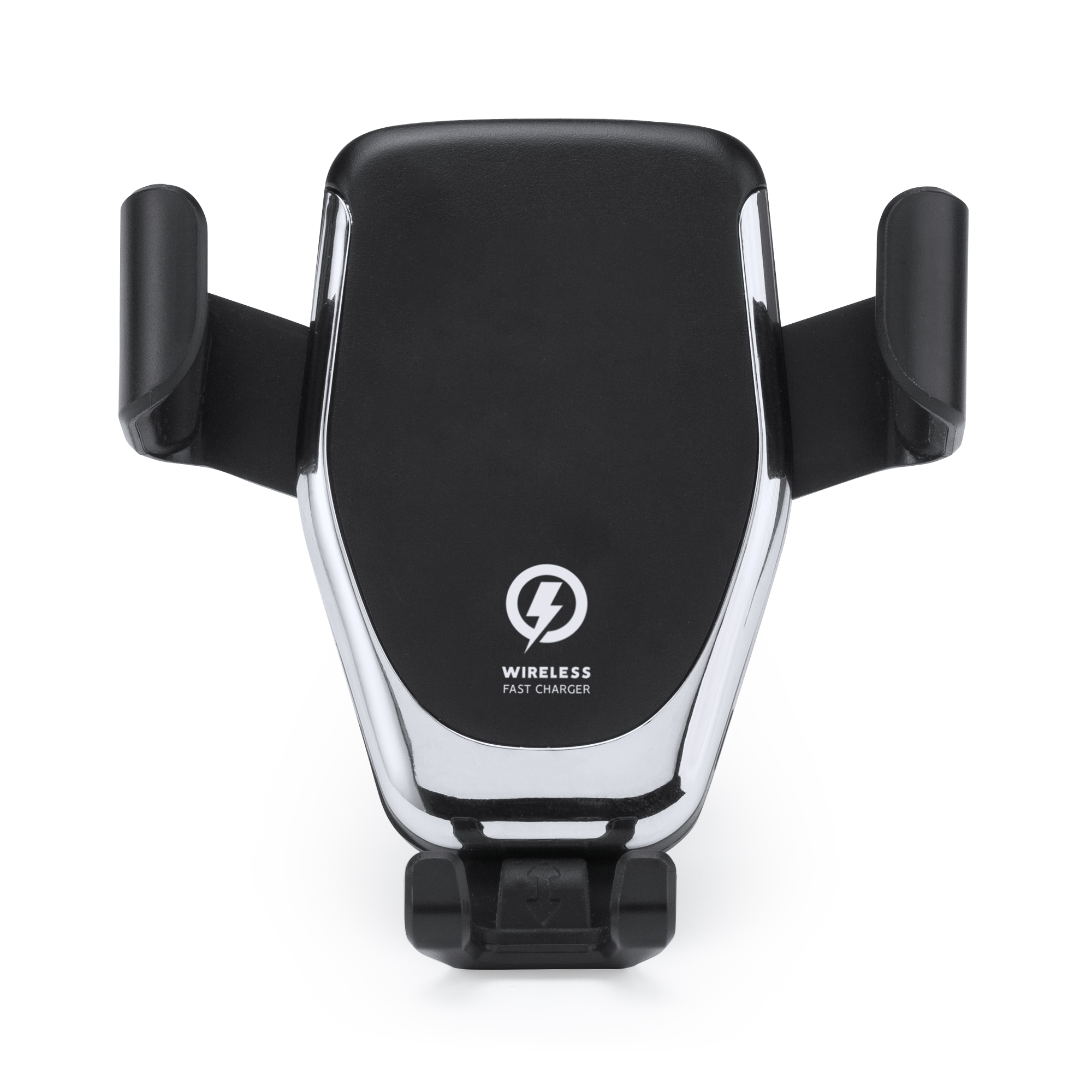 Soporte para smartphone con cargador inalámbrico para coche, fácil de utilizar y de adaptar en tu vehículo. Conecte el dispositivo, coloque el móvil sobre él y deje que se cargue. Compatible con modelos de carga inalámbrica. Cable y dos accesorios incluidos. Carga rápida 10W. DC5V/1.0A.