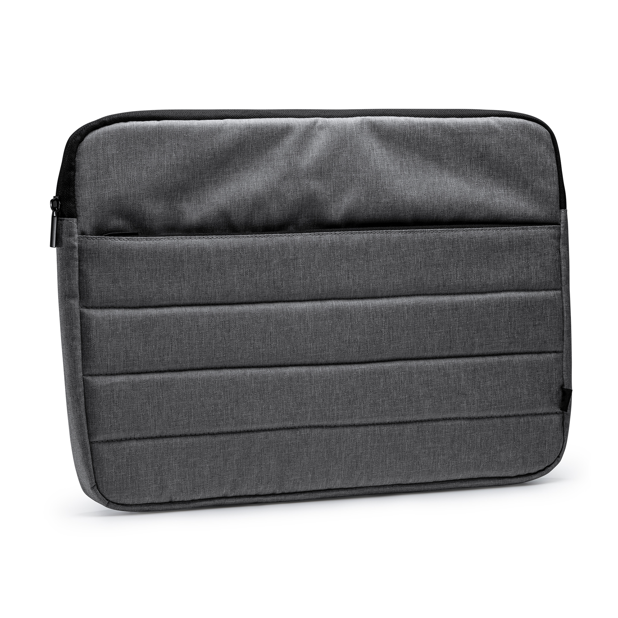 Idónea funda acolchada para portátil de hasta 15″ realizada en poliéster reciclado RPET 300D, con cremallera en negro. Es una opción sostenible y práctica para el cuidado de tu ordenador portátil.