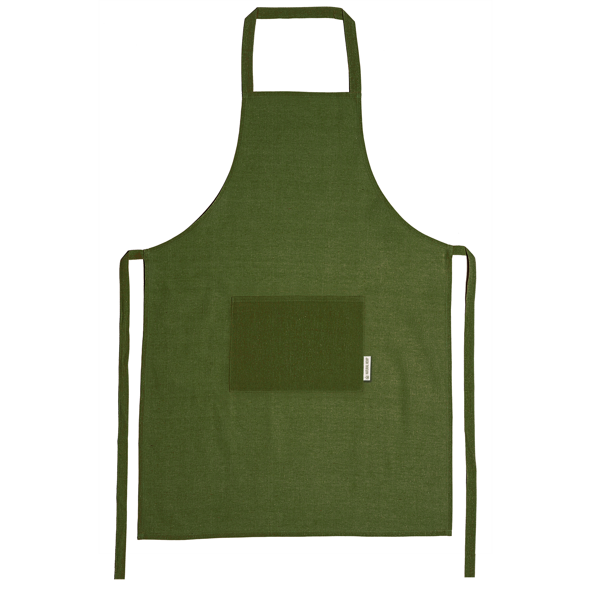 Delantal realizado en tela de cáñamo 200 g/m² con bolsillo frontal. Talla única ajustable.