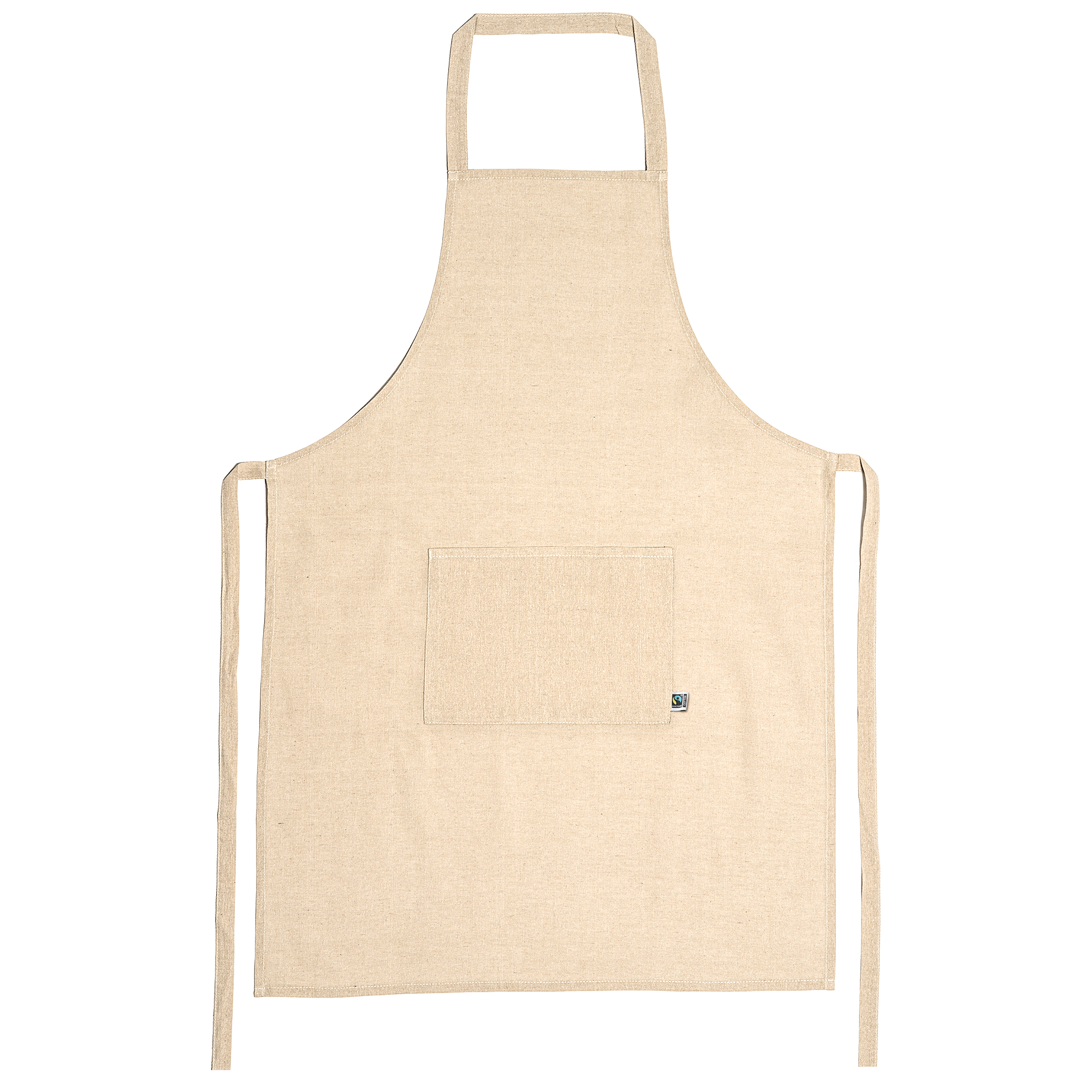 Delantal 100% algodón Fairtrade con bolsillo frontal. Talla única ajustable.